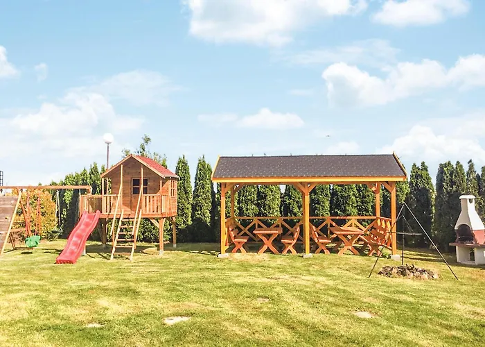 La villa goza de una ubicación privilegiada a 4 km de pie el Jamno y a unos 5 minutos a pie de Przystan Podamirowo. Los huéspedes con niños pueden visitar el Rope Park Toucan, que está a 5 minutos en coche.